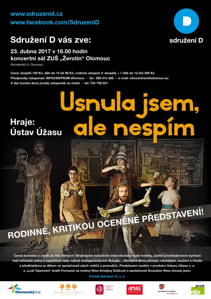 V neděli 23. dubna v 16.00 hodin v rámci naší divadelní přehlídky Poděs máte mimořádnou šanci vidět divadelní představení pražského divadelního souboru Ústav úžasu "Usnula jsem, ale nespím".
