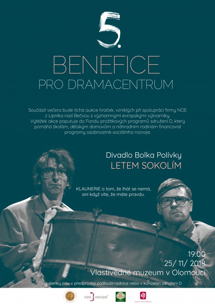 Už pátá Benefice pro Dramacentrum v neděli 25.11.2018 vám nabídne parádní klaunérii Letem sokolím - aneb jak se dva Sokoli připravují na Slet a hned poté budeme dražit plyšáky z unikátní kolekce významných evropských návrhářů, které dolaďuje a pro většinou zahraniční trh připravuje naše spřátelená firma NOE z Lipníka nad Bečvou. To si fakt nikde nekoupíte, něž u nás na Benefici. Tak neváhejte a obstarejte si benefiční VIP dvojvstupenku. Prodává Marcela u nás v kanceláři ... zavolejte jí 733 104 076, nachystá je pro Vás. Těšíme se na vás. Lidi z Déčka