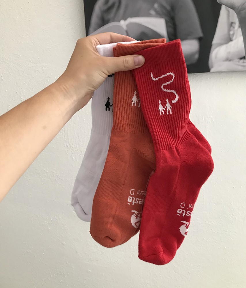 Na vaše cesty do hor, po městě i kamkoli, kam vás nohy zanesou! Ponožky Na cestě najdete ve třech velikostech a třech barvách: bílá, červená a oranžová. Jeden pár prodáváme za 170 korun. Veškerý výtěžek putuje na podporu programu Na cestě, který pomáhá znevýhodněným dětem.